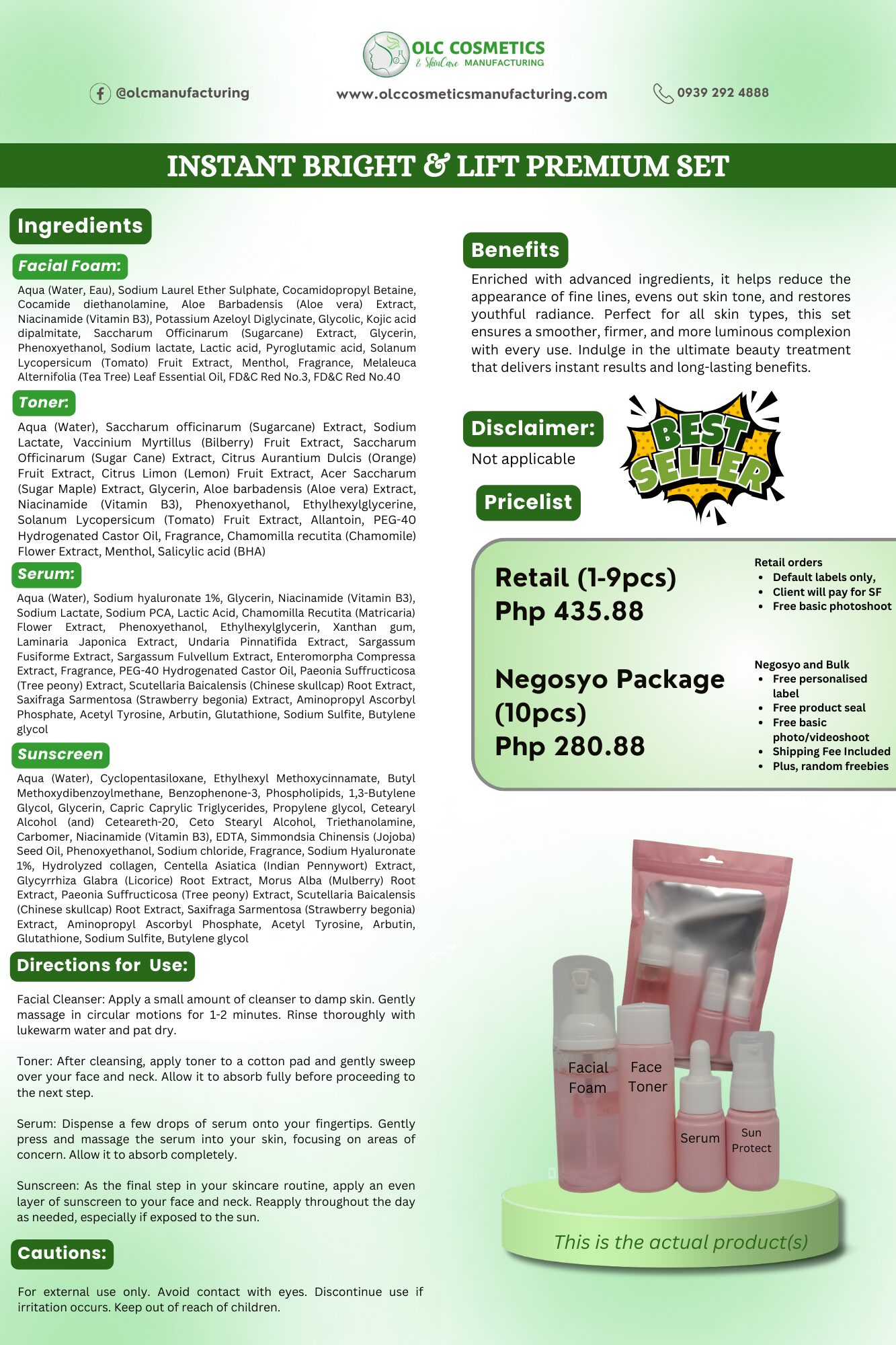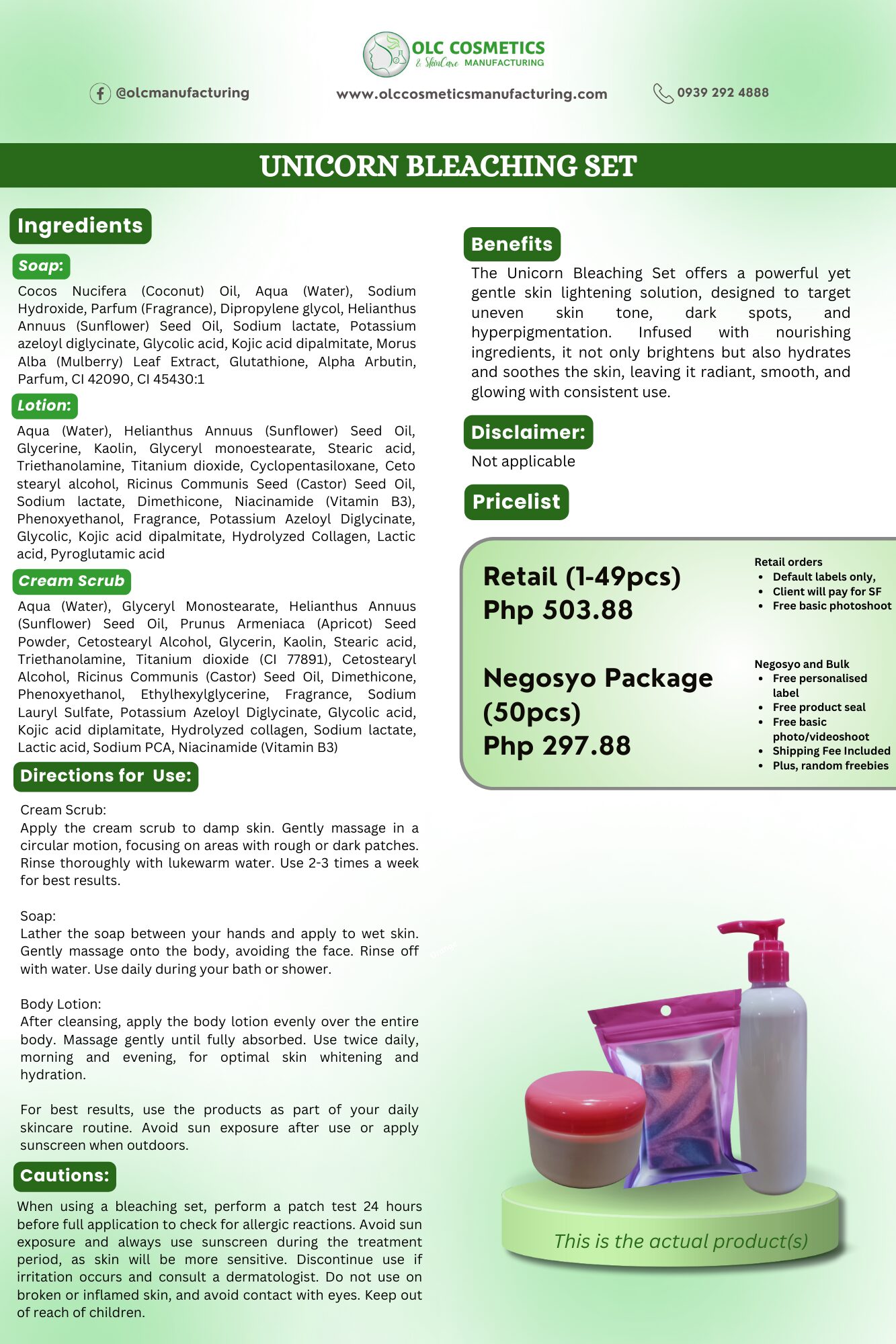 BENEFITS: This Bleaching Set offers a transformative skincare experience, delivering a radiant and even complexion with its gentle yet effective formula. This set not only brightens and lightens dark spots and hyperpigmentation but also nourishes the skin, leaving it soft, smooth, and hydrated. Perfect for achieving a luminous glow, it helps to reveal your skin’s natural beauty while being safe and suitable for all skin types.