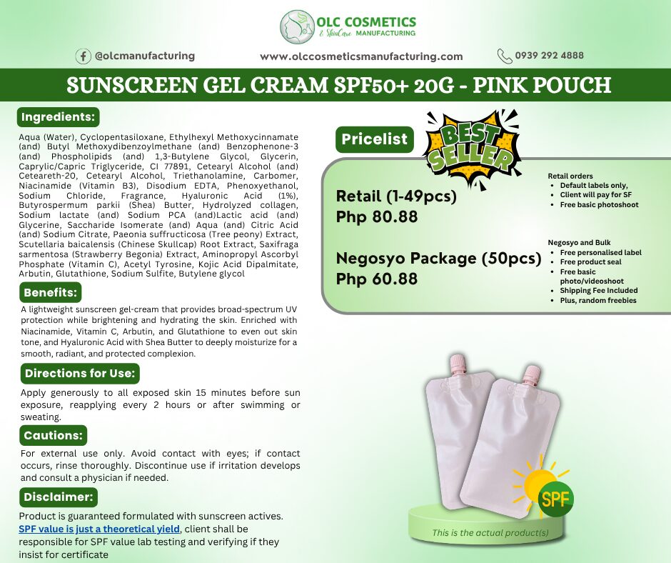 Disclaimer: Product is guaranteed formulated with sunscreen actives. SPF50 value is just a theoretical yield, client shall be responsible for SPF value lab testing and verifying if they insist for certificate