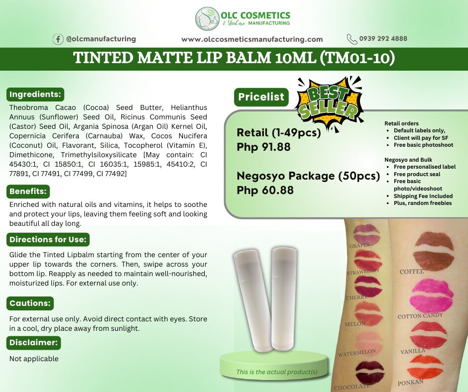 Directions for Use: Apply ample amount of your HD Matte Tint on the middle of your bottom lip only, then rub your lips together to spread on the upper and lower lips.
