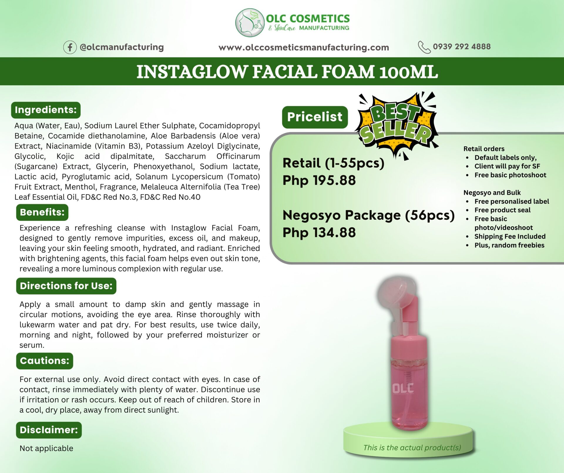 Benefits: Experience a refreshing cleanse with Instaglow Facial Foam, designed to gently remove impurities, excess oil, and makeup, leaving your skin feeling smooth, hydrated, and radiant. Enriched with brightening agents, this facial foam helps even out skin tone, revealing a more luminous complexion with regular use.