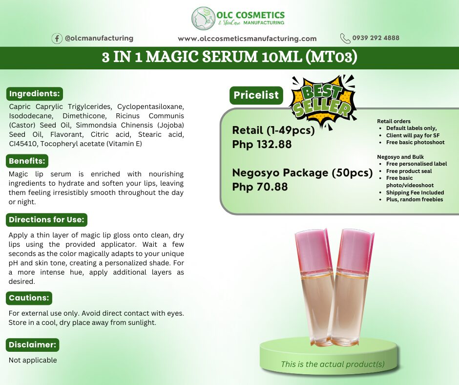 Directions for use: Apply ample amount of your Magic Lip Gloss on the middle of your bottom lip only, then rub your lips together to spread on the upper and lower lips.