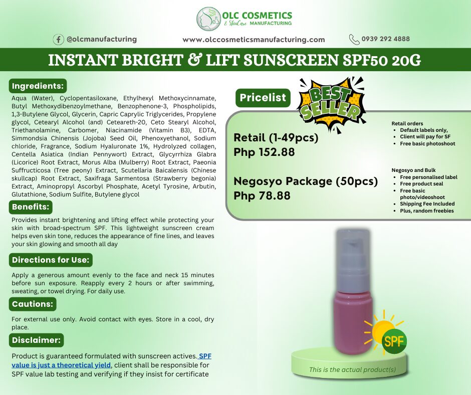 Disclaimer: Product is guaranteed formulated with sunscreen actives. SPF35 value is just a theoretical yield, client shall be responsible for SPF value lab testing and verifying if they insist for certificate.